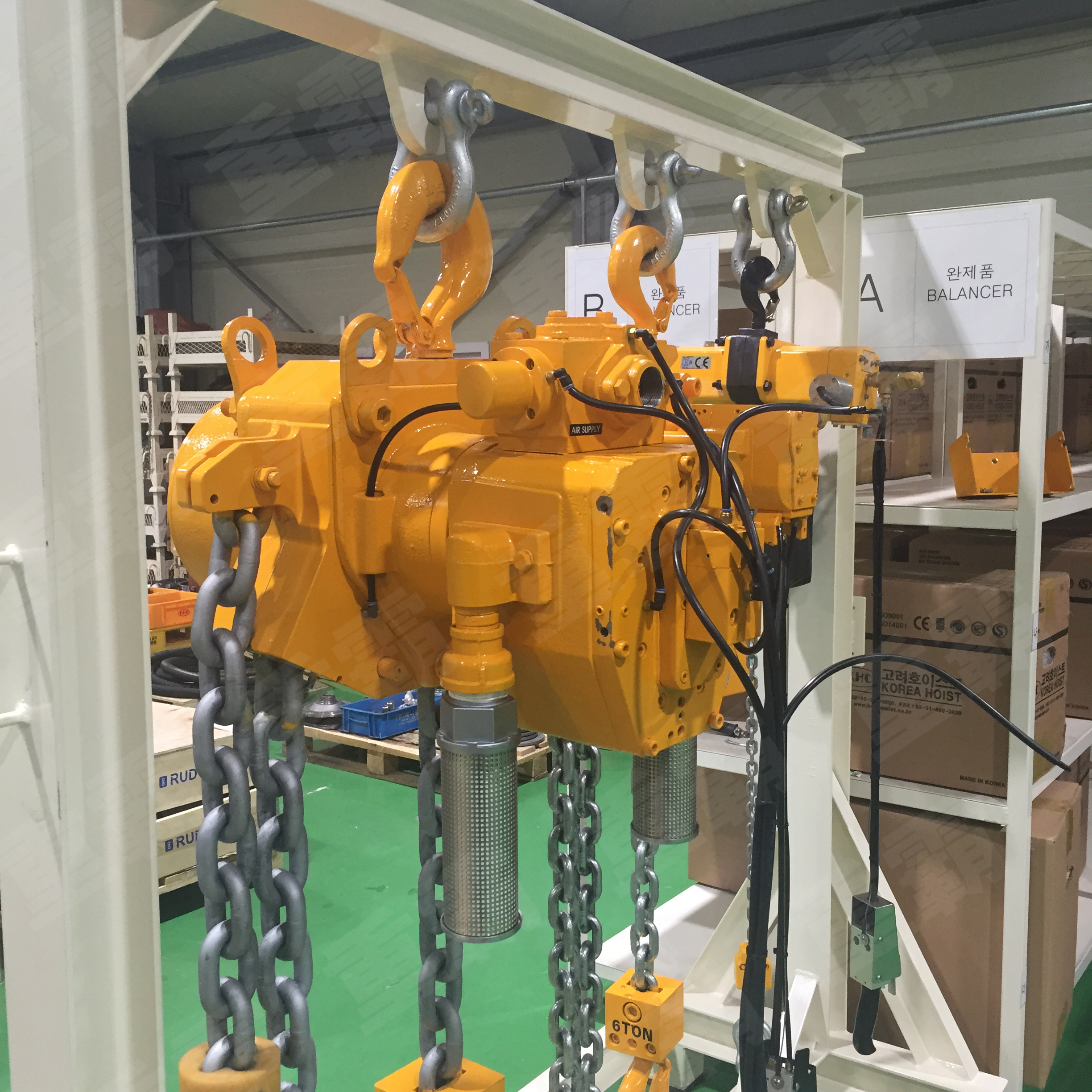 來實現(xiàn)起吊重物的升、降、移動、定位功能。環(huán)鏈氣動葫蘆確保起吊作業(yè)的安全,耶魯氣動葫蘆起吊機構整體可固定使用,也可置于行走機構下方移動使用。