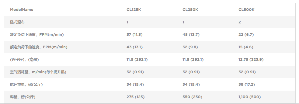 設計用于生產應用和負載高達1100磅,CLK-系列是最新的添加到英格索爾蘭德的系列空氣鏈提升機。
